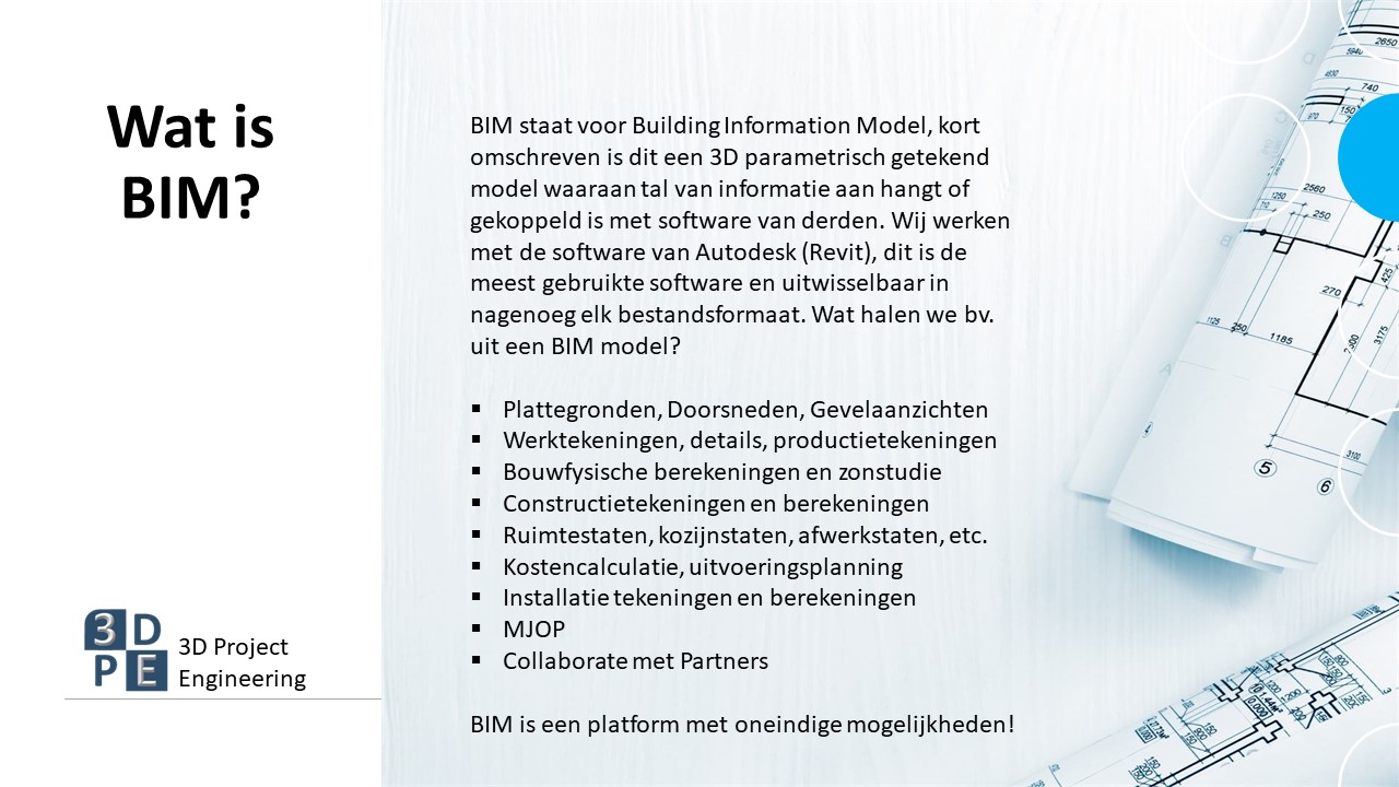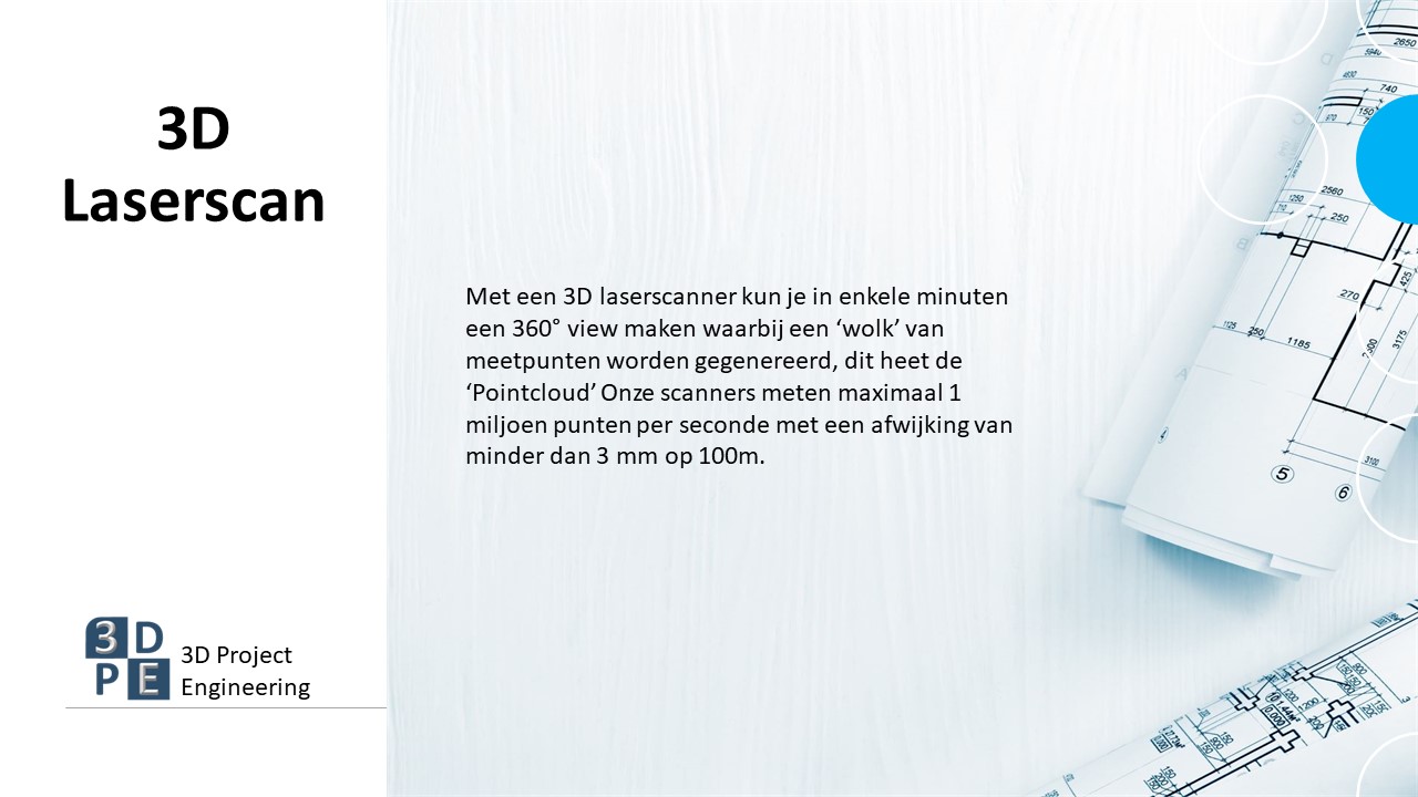3D Project Engineering, afgekort 3DPE is een bouwkundig projectbureau dat gespecialiseerd is in 3D laserscannen, bouwkundig modelleren, tekenen en projectorganisatie tijdens voorbereiding- en uitvoeringsfase. 3DPE is ontstaan uit van zaal Bouwtechniek en is opgericht in 2008. Door samenwerking met vaste partners bedienen wij voornamelijk grote (retail)bedrijven, architecten, bouwbedrijven maar ook kleinschalige particuliere projecten. In de beginjaren en voor de oprichting was ik als huidige eigenaar van 3DPE vooral betrokken in de bouwnijverheid als werkorganisator, projectleider en uitvoerder. Veel praktische ervaring hieruit vertaalt zich in een hoogstaand en kwalitatief product. Samen met dit onderscheiden wij ons in het nakomen van de gemaakte afspraken, iets wat we keer op keer weer bewijzen..