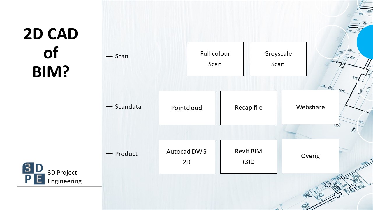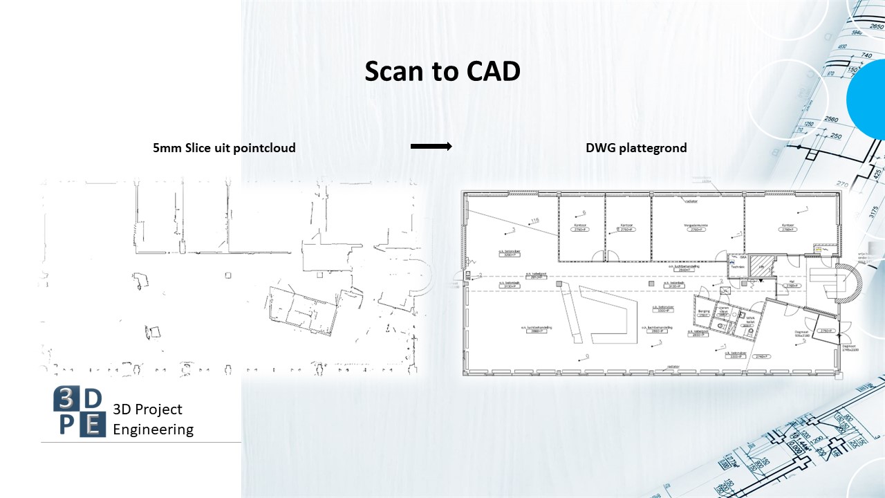 Een eindproduct na een inmeting m.b.v. een 3D laserscanner is veelal een werkbare BIM model of Cad tekening, wij helpen u graag hierbij om de beste keuze te maken. Vaak is een Scan vertaald naar een Cad tekening voldoende voor het gehele proces van SO tot uitvoering.